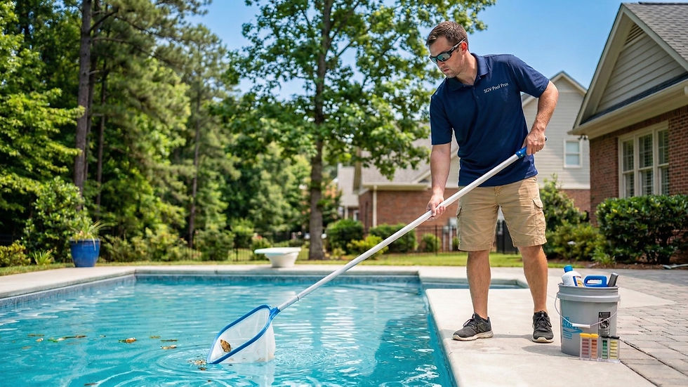 Weekly service is standard for most residential pools, keeping water chemistry balanced and preventing algae growth. During North Carolina's humid summer months, professional weekly maintenance typically costs $80-$150 monthly, with regular care preventing expensive problems down the road.